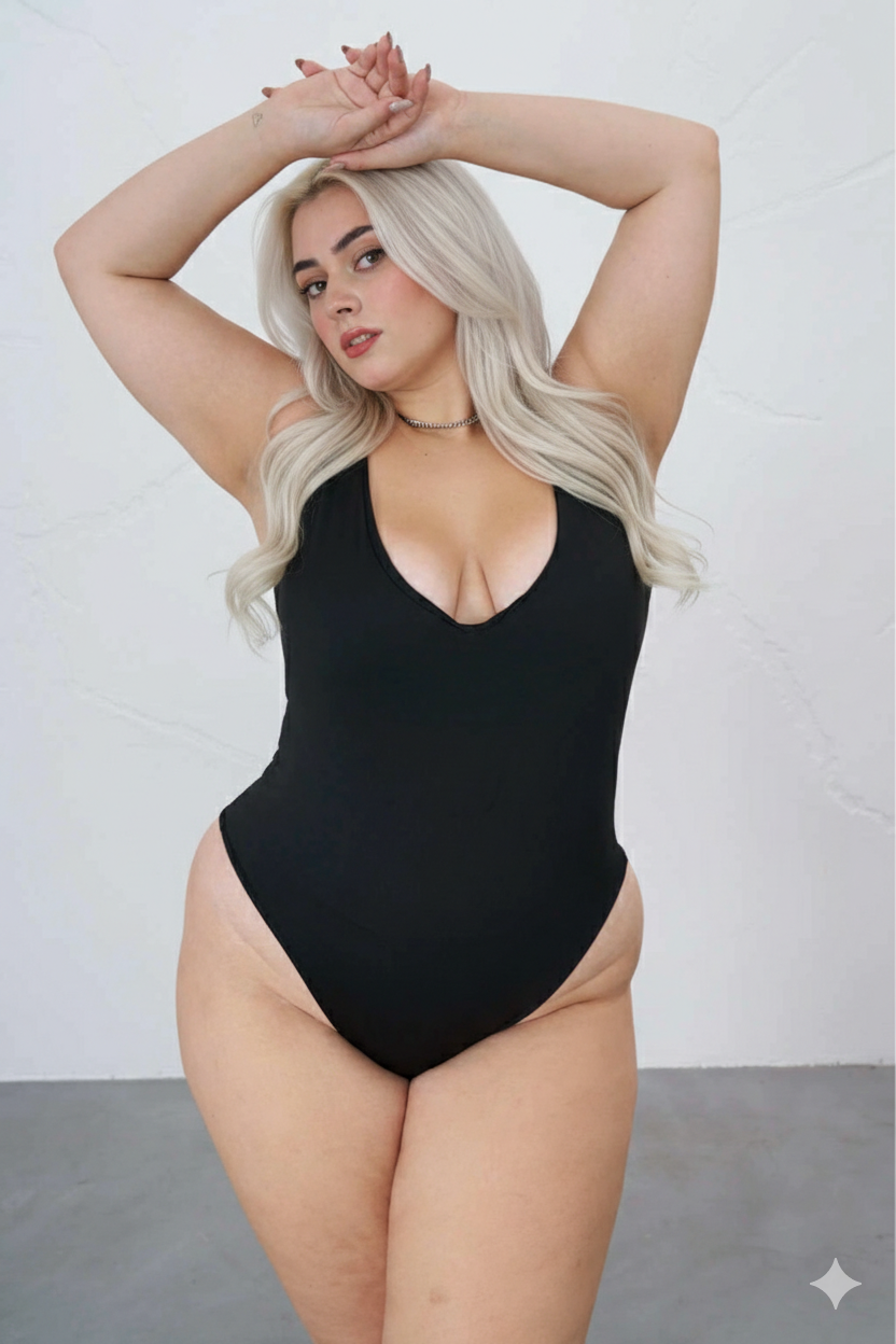 Body de escote v pronunciado y ganchitos en el tiro.