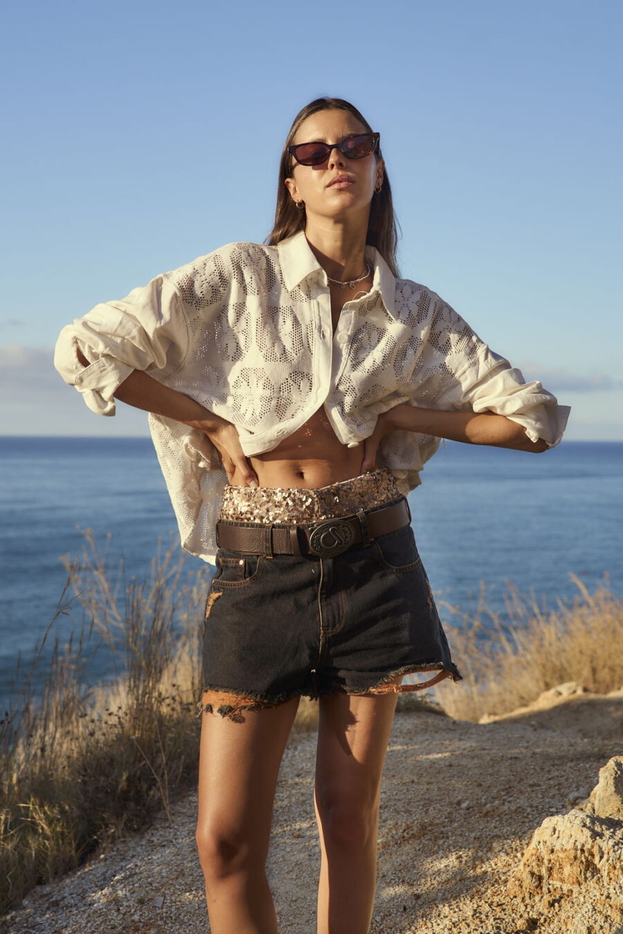CAMISA COMBINADA TEJIDO Y LINO