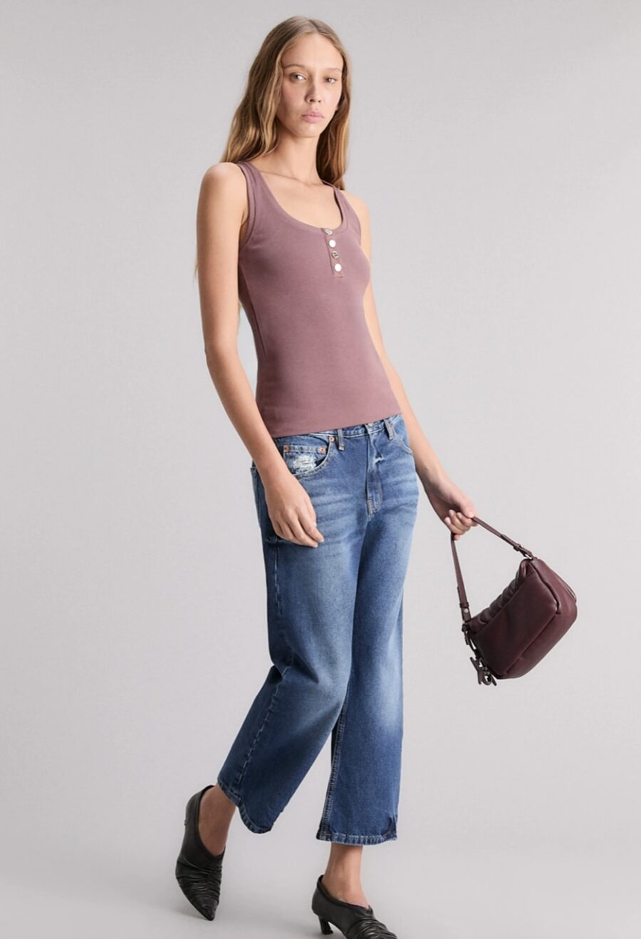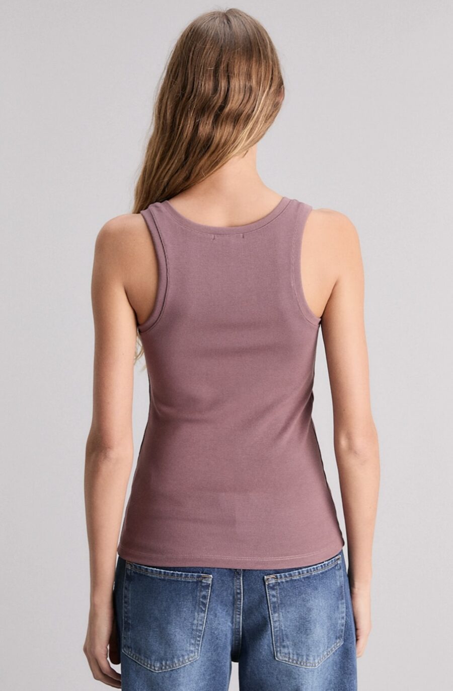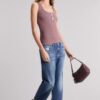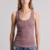 La Musculosa Joyride de calce slim, tiene escote redondo, cartera con broches metálicos identitarios de la marca y breteles anchos. Está confeccionada en morley pesado, suave al tacto.