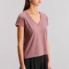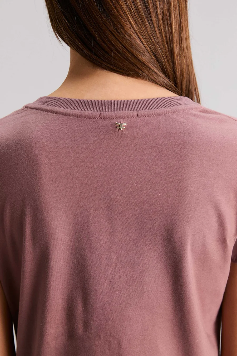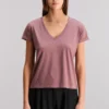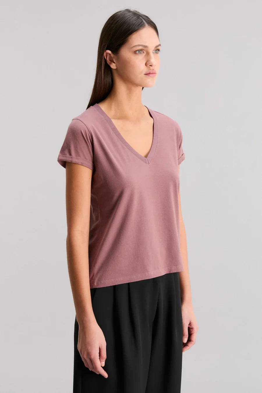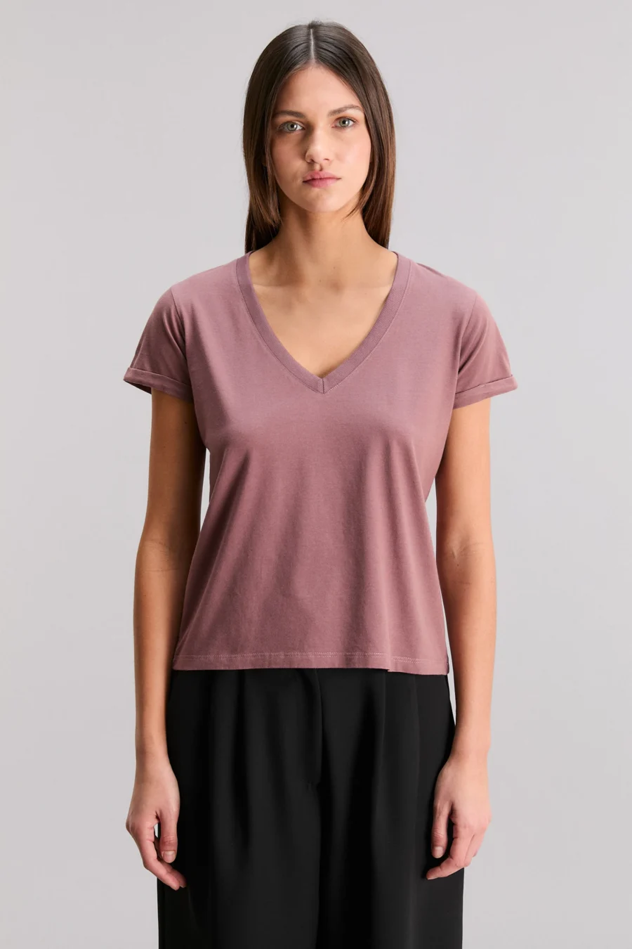 La Remera Judy de calce regular, escote en “V” y mangas cortas. Esta confeccionada en jersey de algodon. LLeva isologo de la marca metálico.