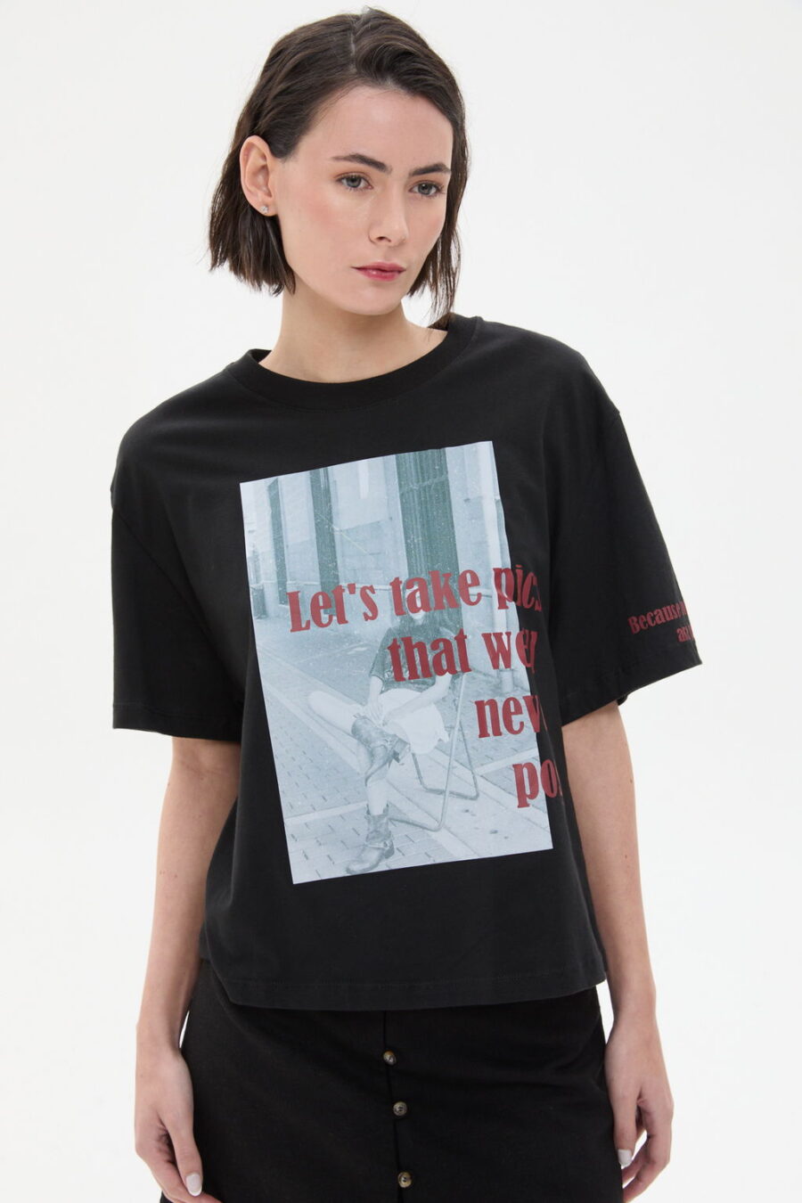 REMERA ESTAMPADA LETS TAKE PICS BLACK
