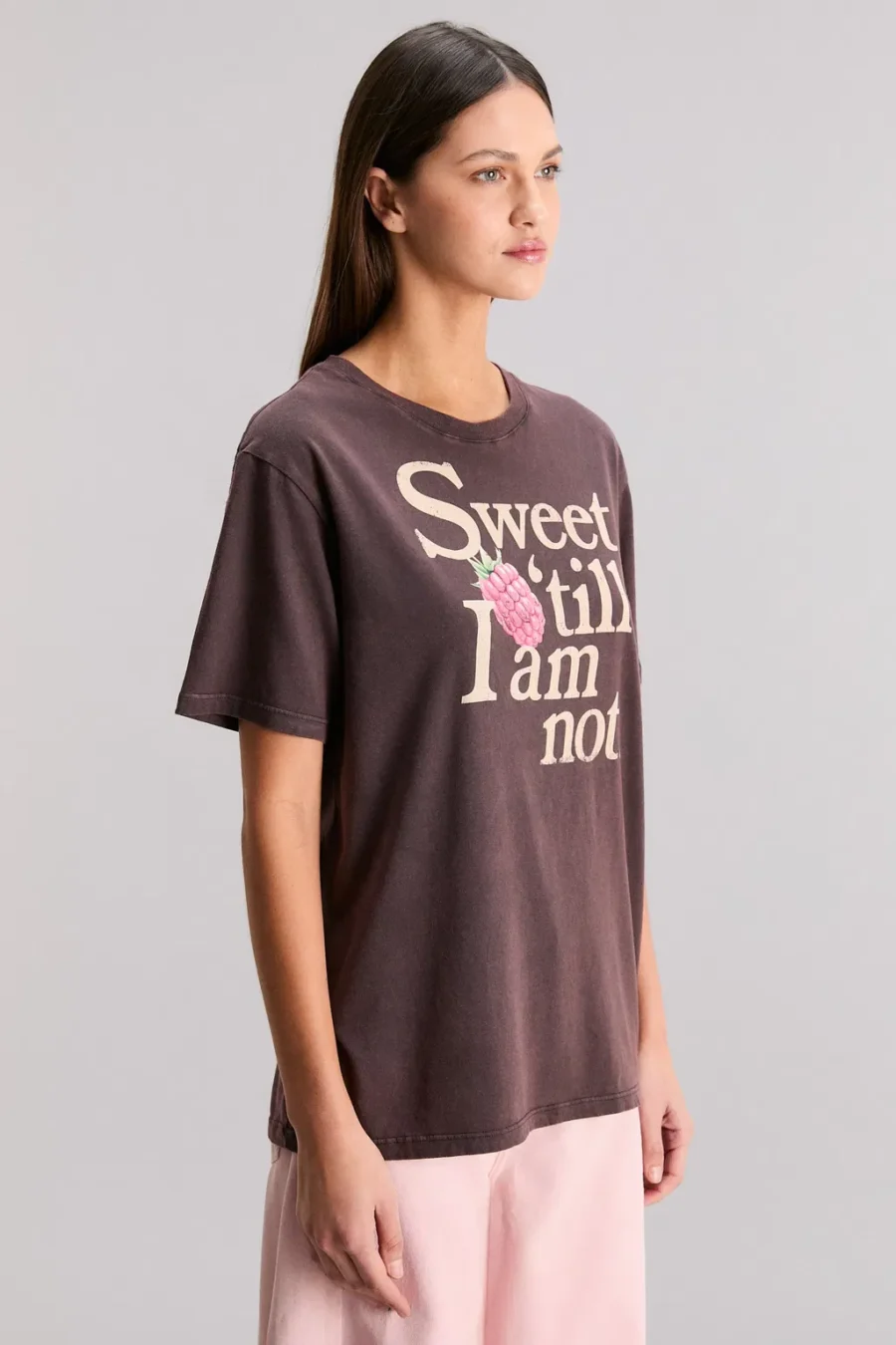 La remera Not That Sweet de calce regular, esta confeccionada en jersey de algodón. Tiene cuello redondo en rib a tono, manga corta y en el delantero arte exclusivo de la colección