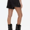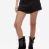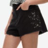 CONFECCIONADO EN DENIM DE ALGODÓN. TIRO MEDIO Y SILUETA RECTA. DETALLE DE TRANSFER METÁLICO EN DELANTERO Y ESPALDA. RUEDO DESFLECADO Y DESGASTES LOCALIZADOS. CIERRE FRONTAL CON CREMALLERA Y BOTÓN METÁLICO.