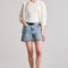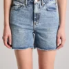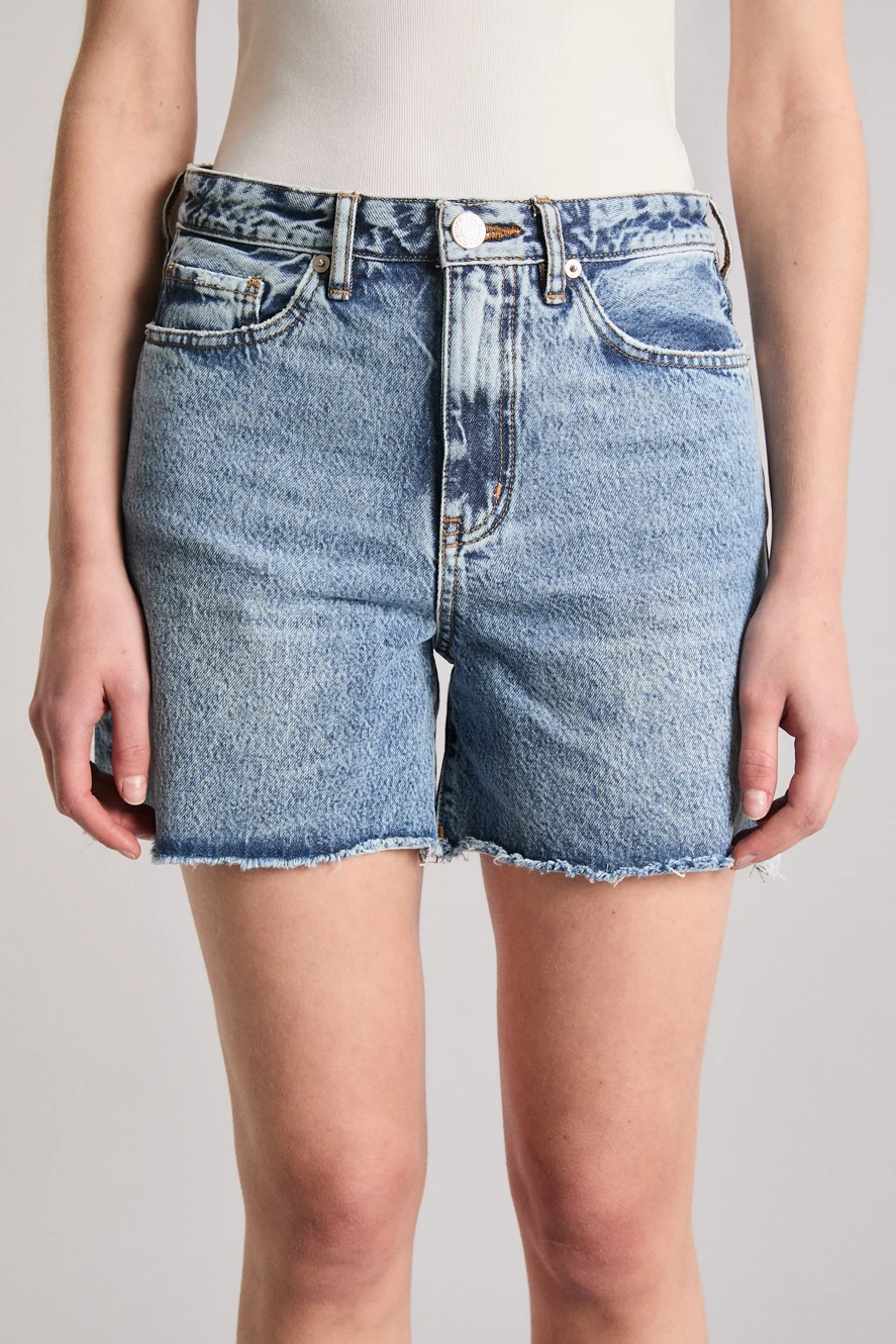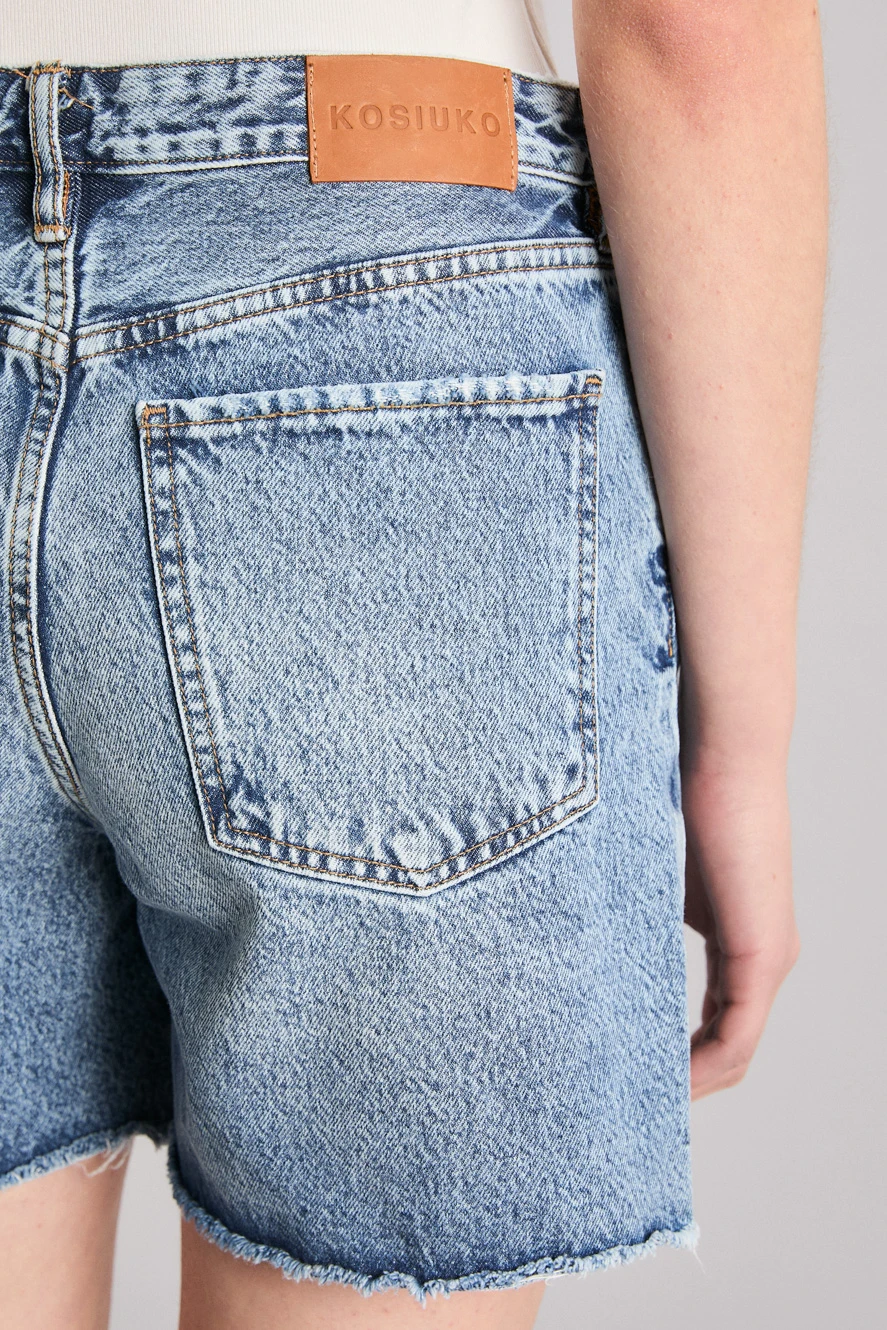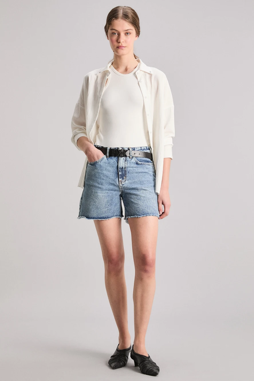 Short Tash Snow,es de tiro alto y calce regular. Confeccionado en un tejido 100% algodón. Ruedo desflecado. Tono mid blue