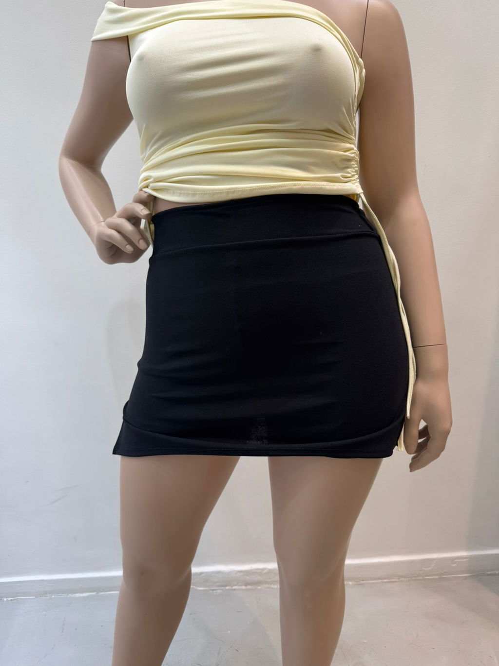 Skort de crep con short interno. Tiene tapa delantera y trasera (sin recorte) y tajo lateral