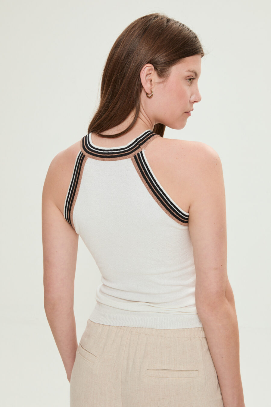 Top de hilo marca OSSIRA, con franjas
