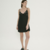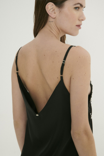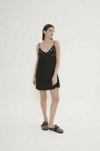 VESTIDO CORTO SATEN CON BORDADO ARTESANAL NEGRO