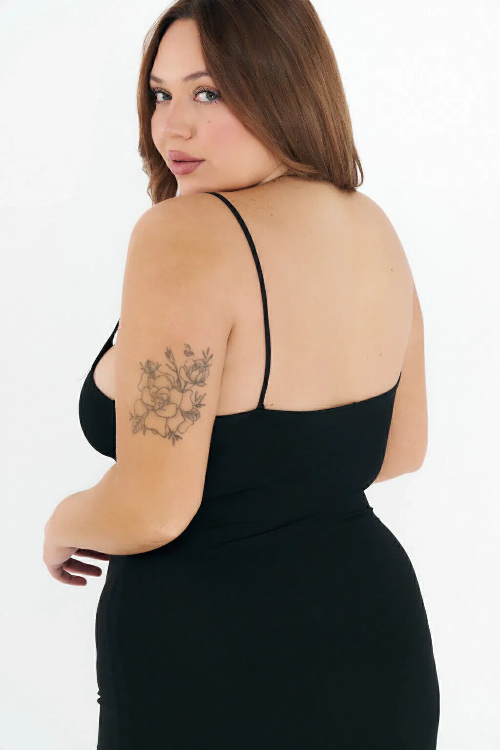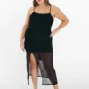 Vestido de tul con forreria interna. Con detalle de frunce y tajo