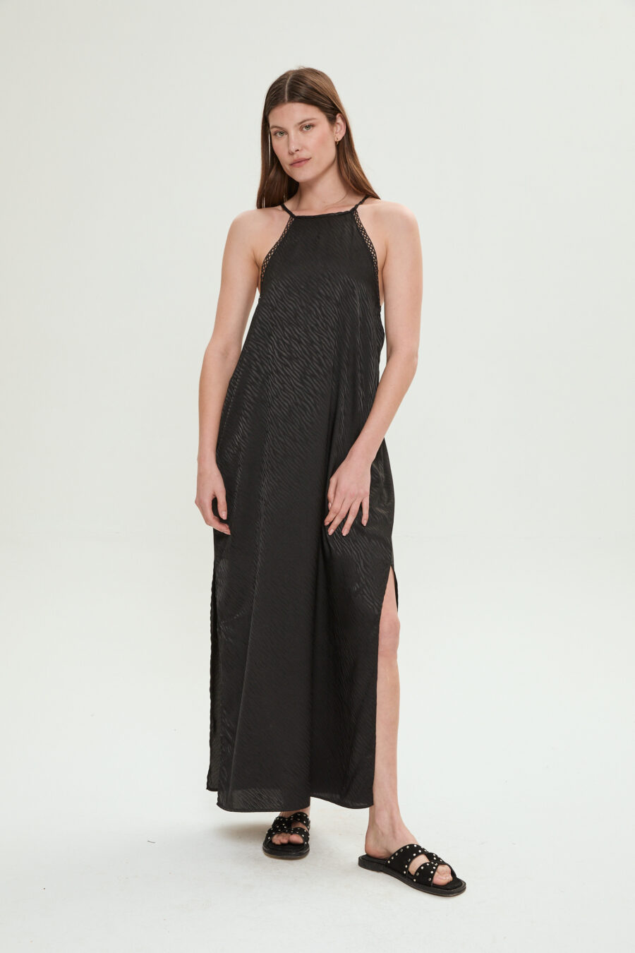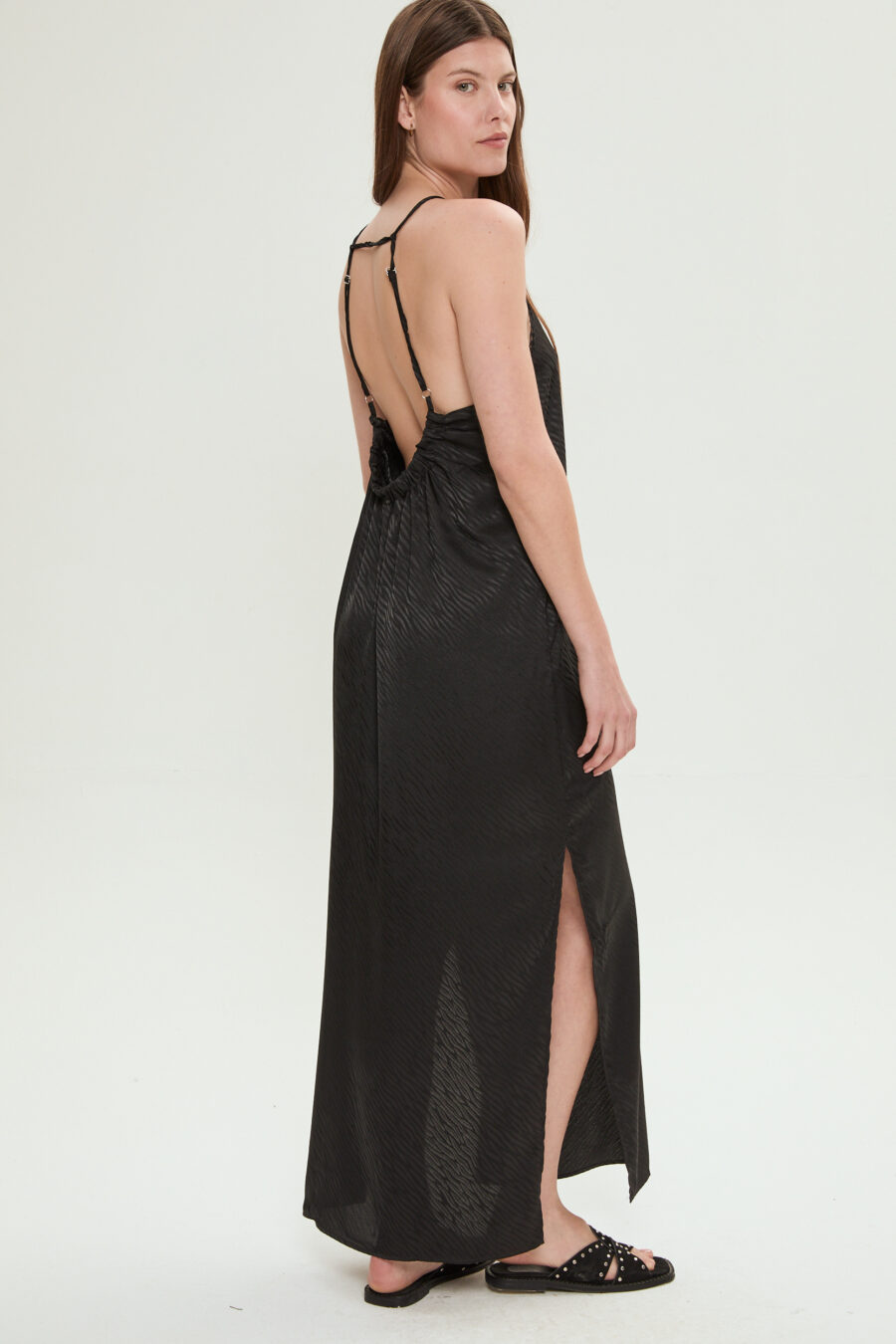 VESTIDO SATÉN TRAMADO NEGRO